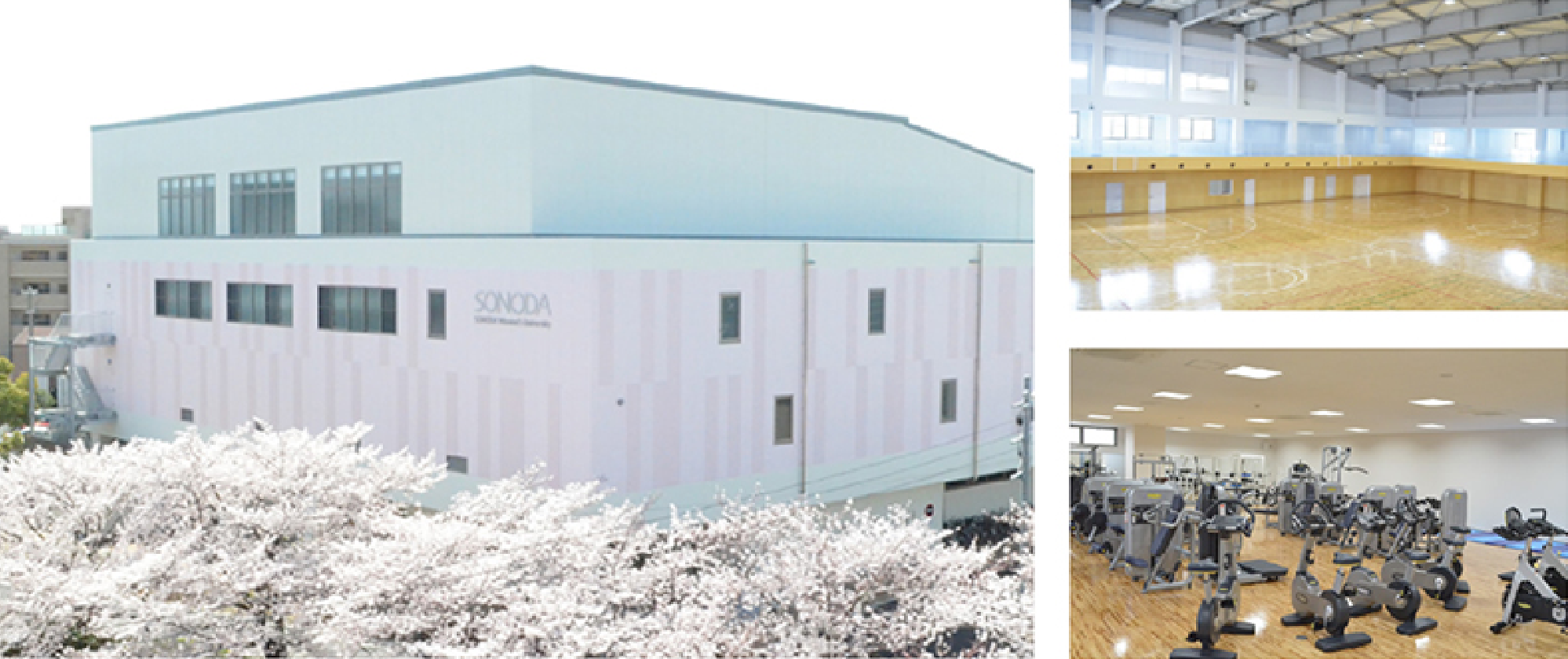 「スポーツのSONODA」の魅力を結集した、スポーツセンターが2015年に完成しました。バスケットボール、バレーボール、バドミントンの各コートを設置したメインアリーナをはじめ、可動間仕切のサブアリーナ、多種多様なマシンを揃えたトレーニング室などを完備。その他、さまざまな用途に応じた多目的ルームも備えています。