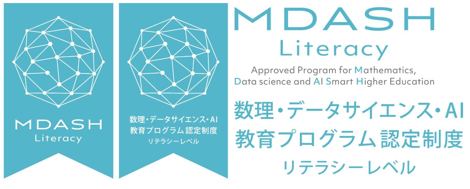本学の「数理・データサイエンス・AI教育プログラム」は、文部科学省「数理・データサイエンス・AI教育プログラム認定制度(リテラシーレベル)」に認定されています。