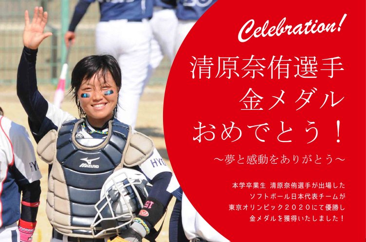 本学卒業生の清原奈侑選手がメンバー入りしている女子ソフトボール日本代表チームが、東京オリンピックの決勝にて米国チームを2対0にて制し、見事、金メダルを獲得しました。多くの苦難を乗り越えてのチームの活躍を祝福いたします。
