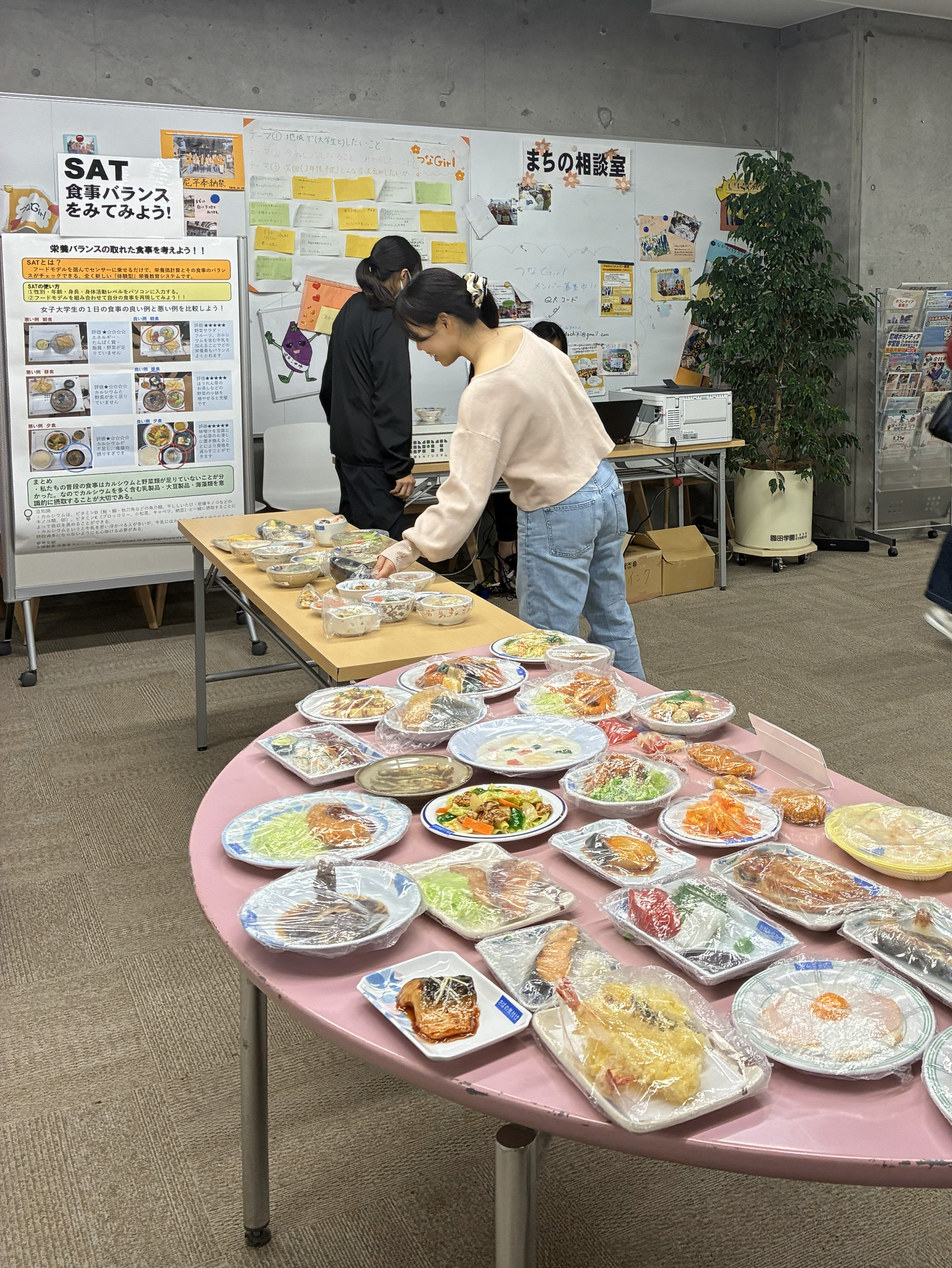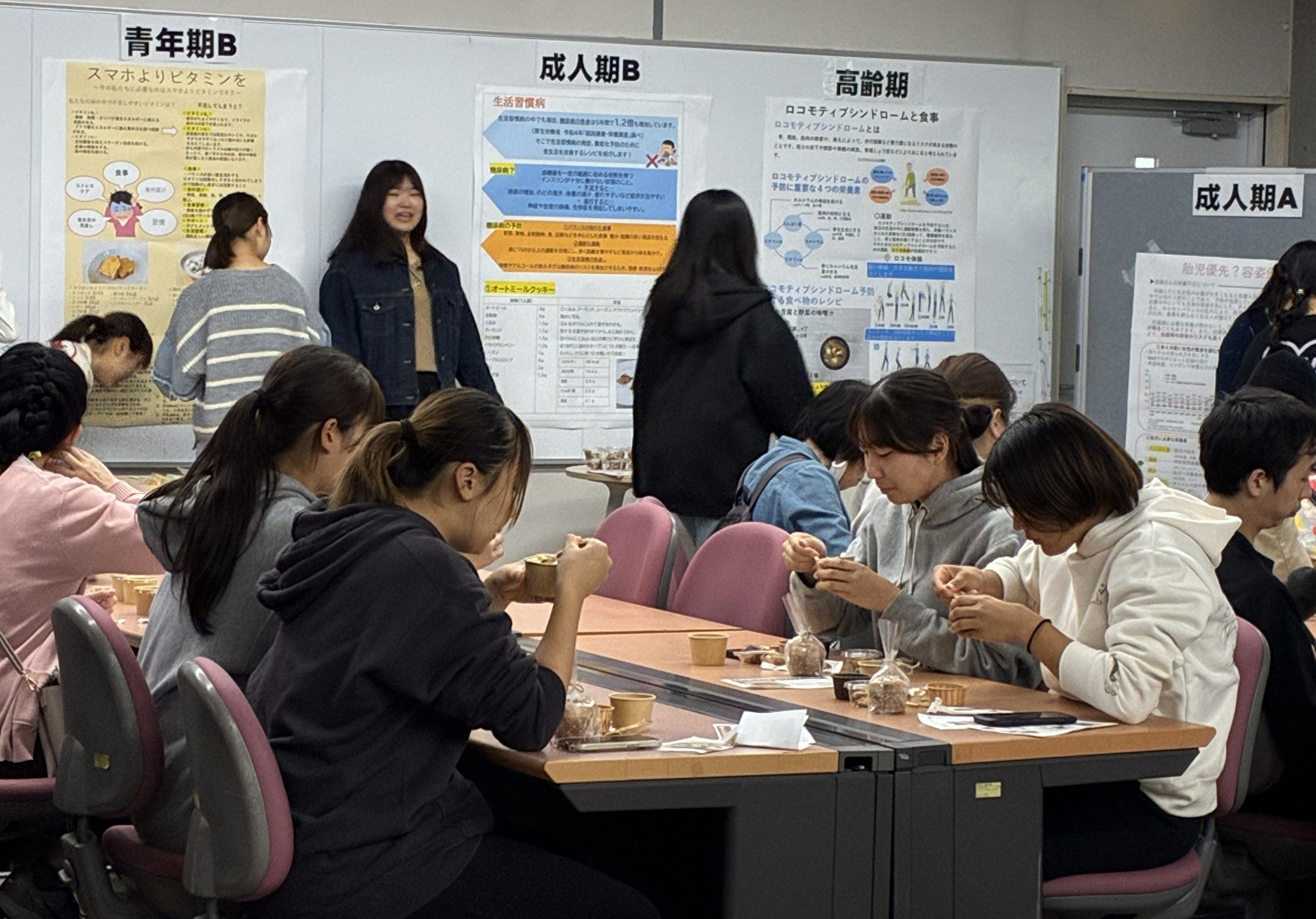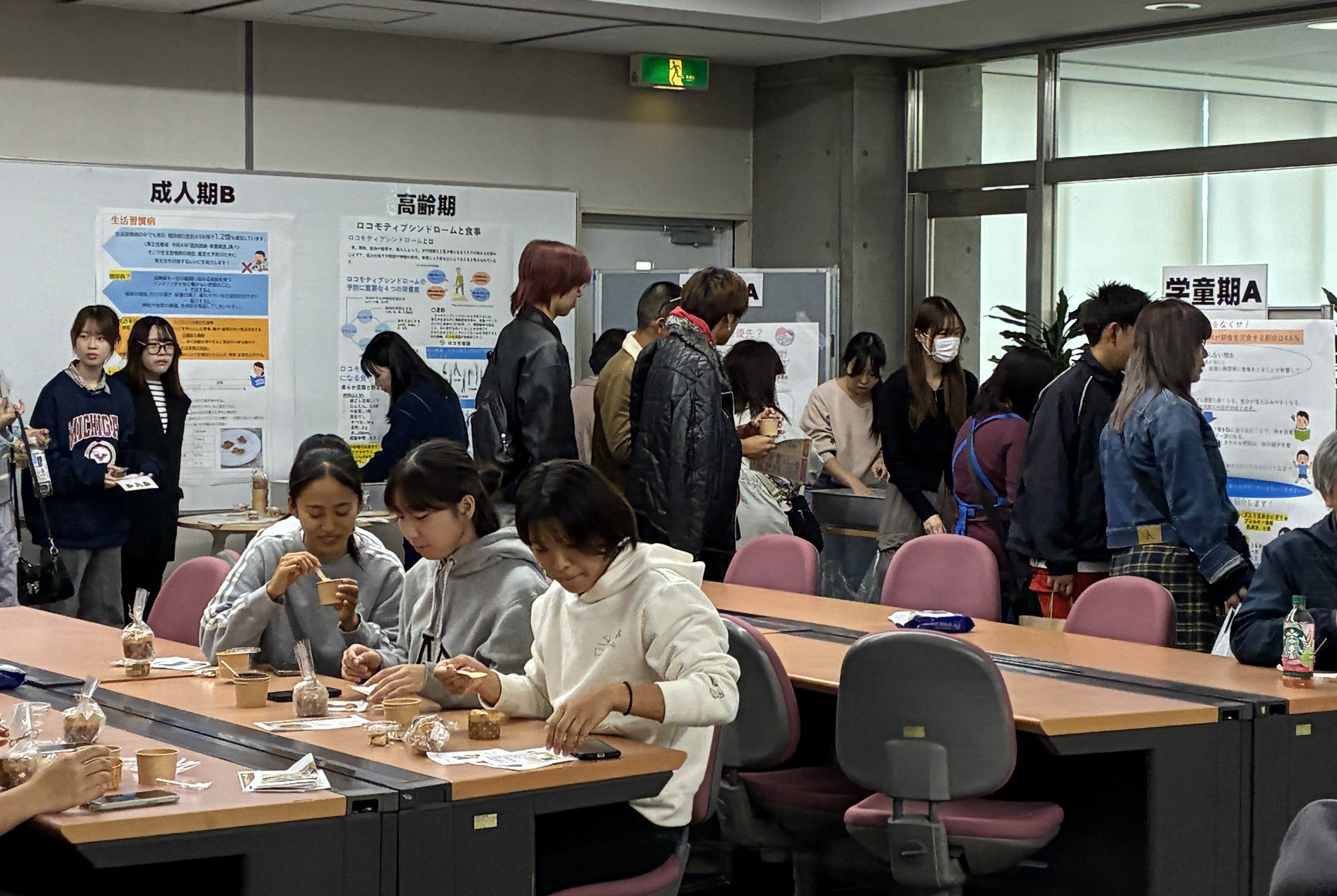 2025年10月の「けやき祭」では、世代別の健康情報の提供と学生が考案したメニューを試食していただきました。