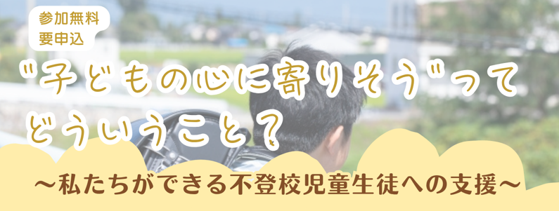 研修会開催のお知らせ『"子どもの心に寄りそう"ってどういうこと?~私たちができる不登校児童生徒への支援~』